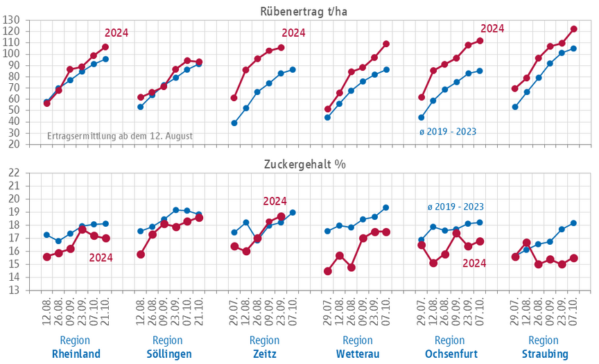Unsere Ertragsermittlungen beginnen ab Anfang August und werden alle 14 Tage bis Ende Oktober durchgeführt.